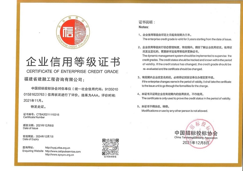 建融公司获得2018-2019年度福州市守合同重信用企业