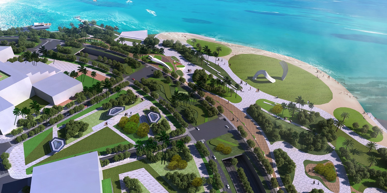 泉州台商投资区海湾大道道路及景观工程全长22.5km,起点由台商投资区和惠安分界开始,整体顺延沿海大通道向西至CBD商区,向北终点至后渚大桥东侧互通立交。海湾大道的道路等级为城市主干路,主路采用一级公路线型指标,设计速度80km/h(局部降速),辅路采用城市次干路线型指标,设计速度采用40km/h。